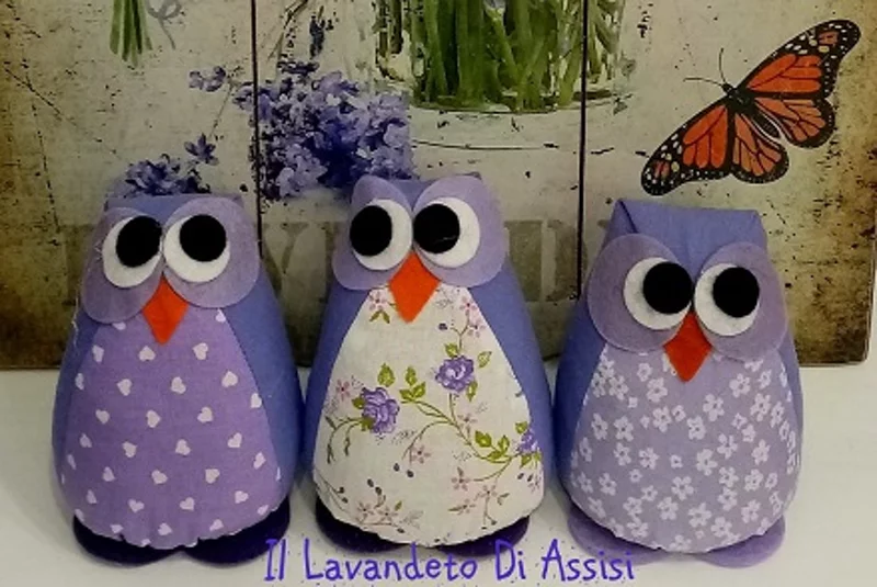 Sacchetto lavanda a forma di gufo in fantasia di lilla.